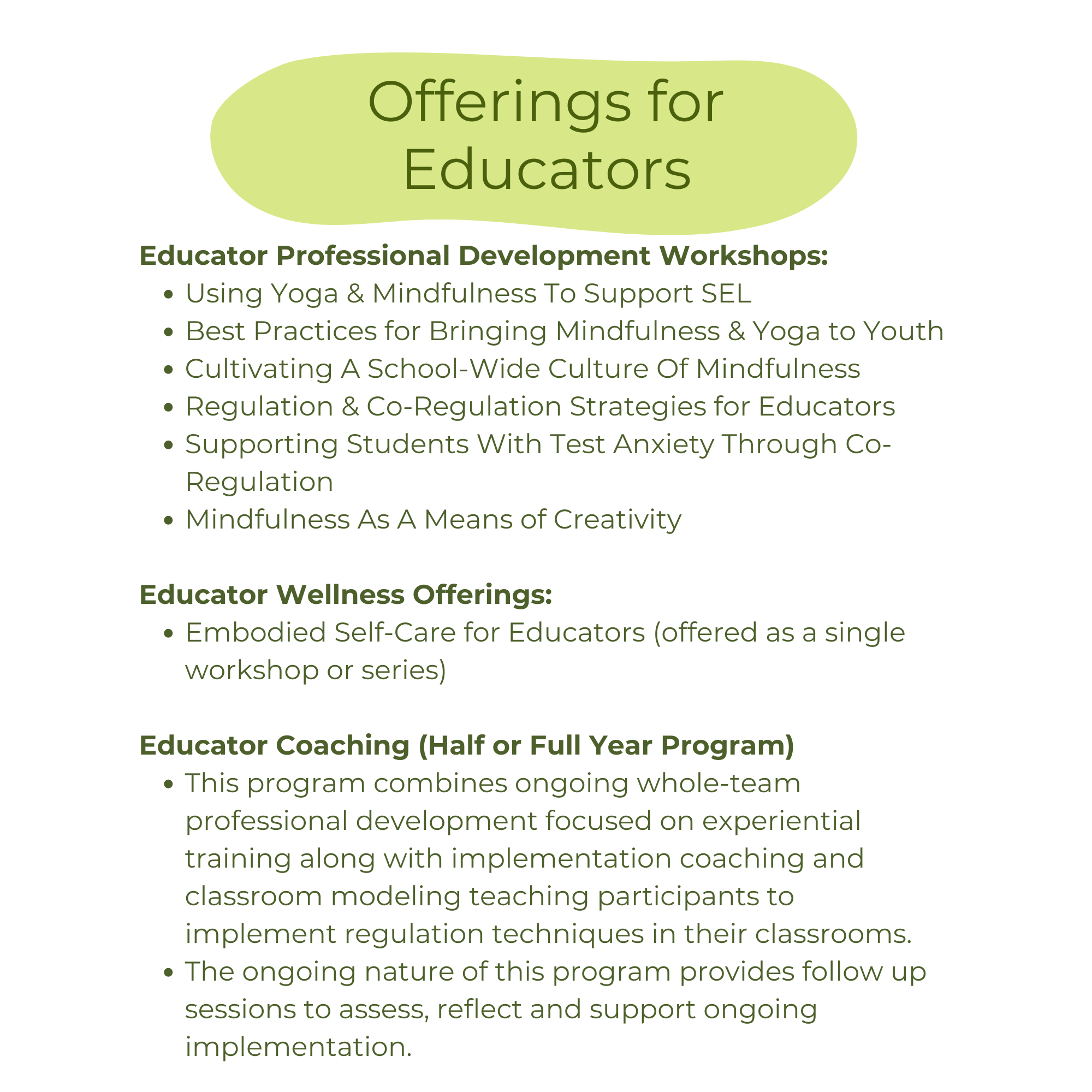 We offer both skill-based professional development sessions, and educator wellness workshops.